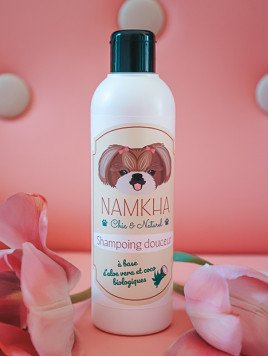 Le shampoing douceur est à base d'ingrédients biologiques qui ont été rigoureusement sélectionnés pour leur caractère non irritant. Il contient 95.7% d'ingrédients d'origine naturelle dont l'huile de coco et l'aloe vera biologique qui vont nourrir et hydrater le poil et la peau.